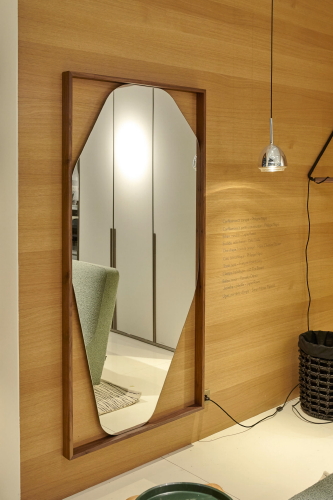 まるで額に収められた絵を思わせるような、個性的なデザインの鏡で、部屋の印象をモダンでエレガントな空間に一変させます。大きいものは床置きで使ってもおしゃれです。フレームはウォールナットの無垢材です。