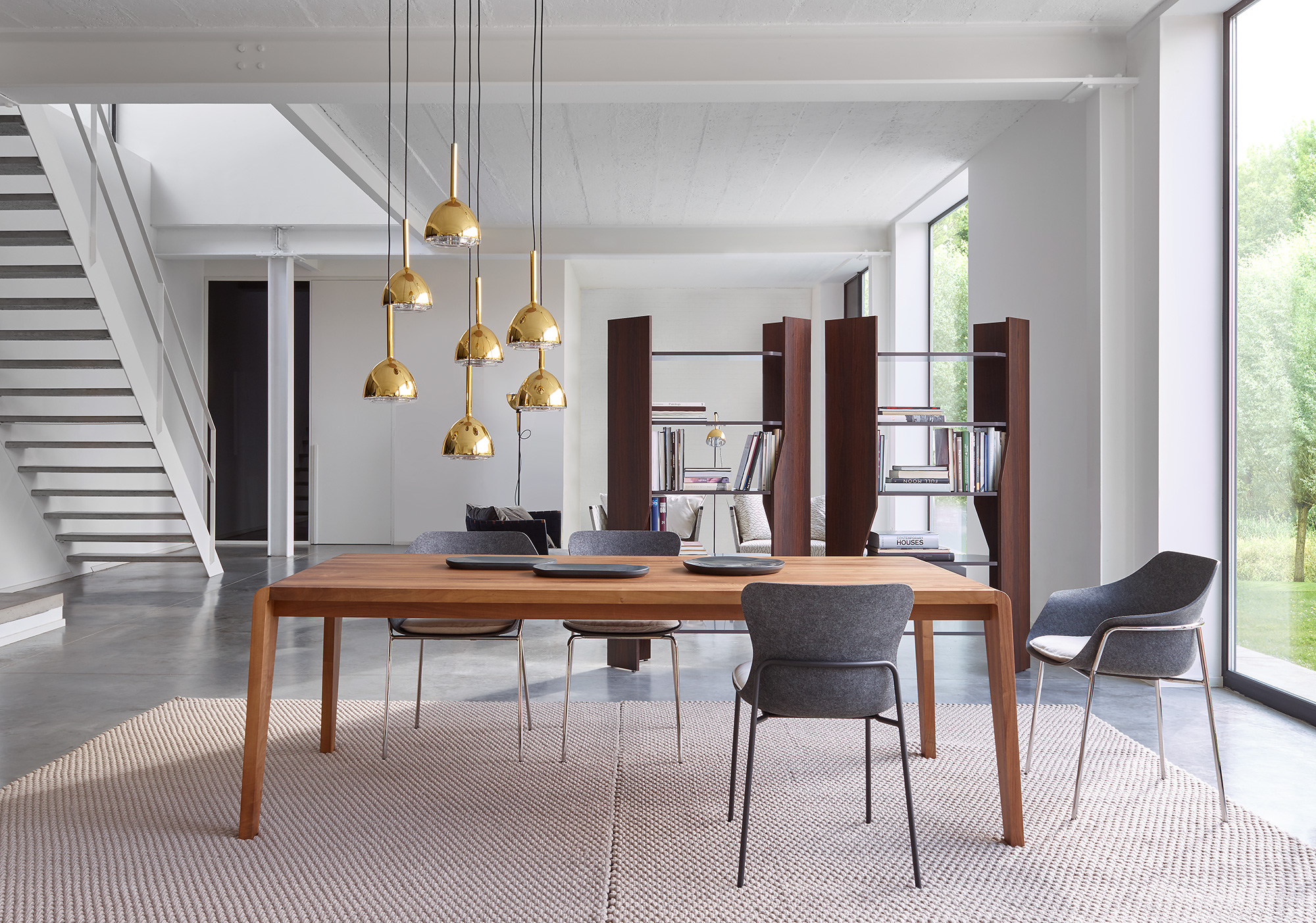 デザイナー ミカエル・ケーニグの独特な発想とスキルが見事に表現されたこのシェルフは、大胆な左右のパネルが特徴です。左右同じ形のパネルを上下逆向きに配置することでアシンメトリーとなり、棚に収納した本や小物が見え隠れするユニークな効果があります。また、ローズブラックのパネルとトープ色の棚によるカラーパターンは、高級感あふれる組み合わせです。