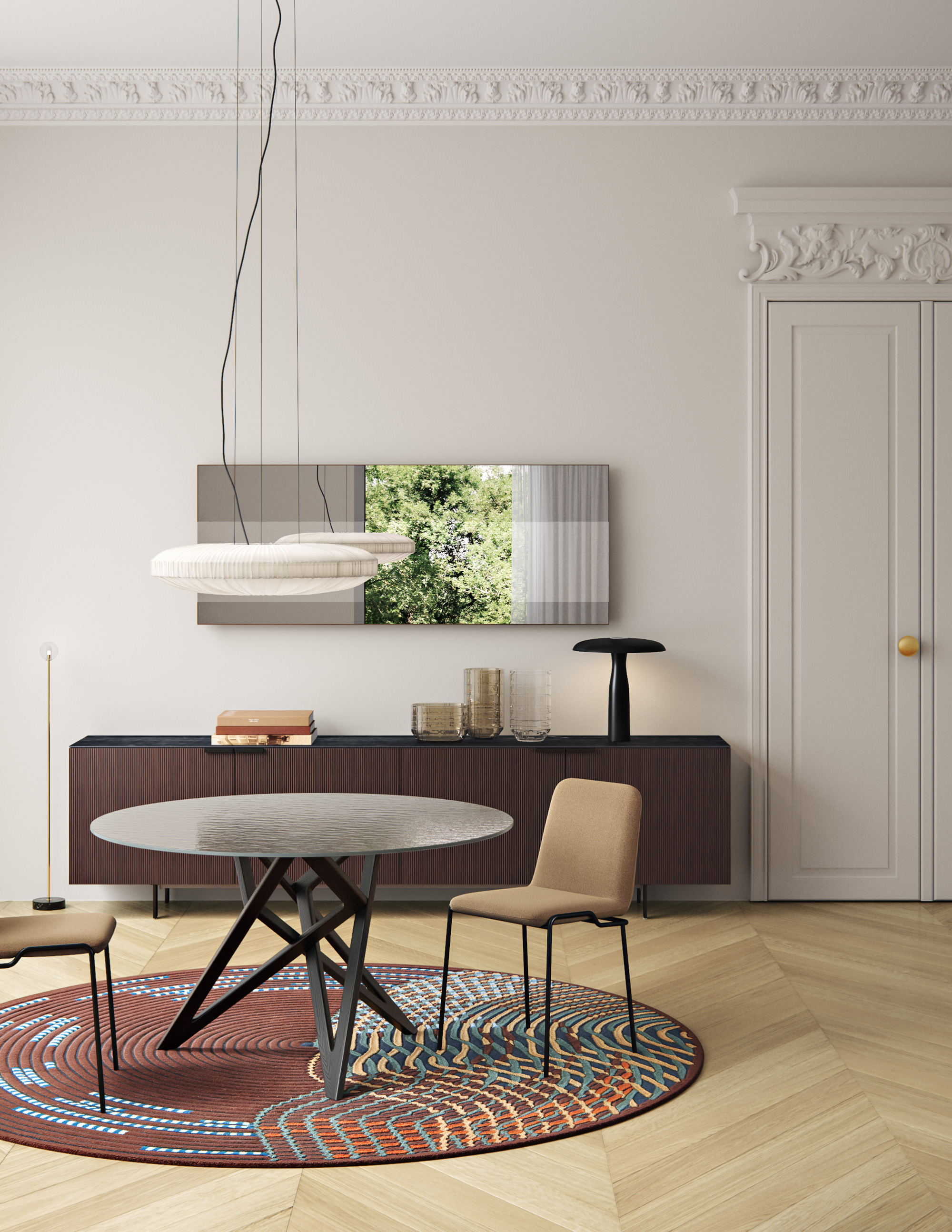 1950〜60年代のミッドセンチュリーデザインを再解釈したチェアです。ゆるやかなカーブを描く本体と、細く長く伸びた脚が美しく融合し、シンプルながら洗練された佇まいに仕上がっています。 また、本体の厚みが薄く、シャープな印象を与えます。座面の前方はフレームと直接ジョイントされておらず、圧迫感のない快適な座り心地を実現しています。背にもたれたときのクッション性が高く、しっかりと身体をサポートします。