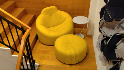 張地はUltrasuede® nu。爽やかなイエローカラーの張地で、 革のような質感は高級感がある...
