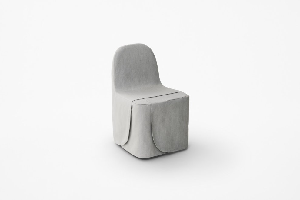 チェアは全体をファブリックカバーで覆い、3枚のパーツをずらしながら重ね合わせたかのようなデザインに仕上げています。カバーは着せ替えすることができ、メンテナンスが簡単にできます。カラーは、ライトグレー(agoraPANAMA Cloud)とライトベージュ(agoraPANAMA Fossil)の2色展開です。