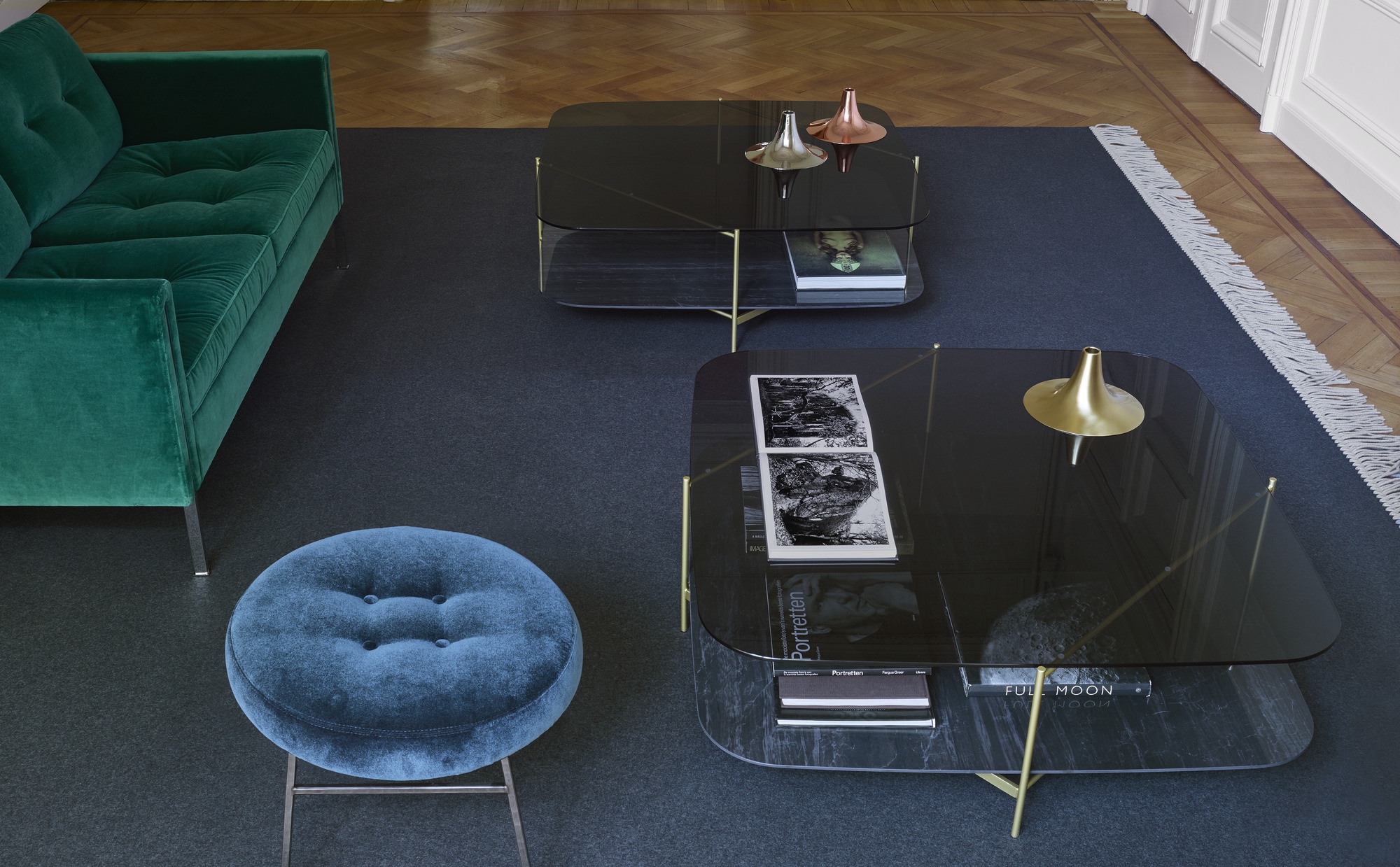 ソフトなアップホルスタリーのスツールです。ベーシックなソファと組み合わせたり、エントランススペースやベッドルームなど、さまざまなシーンにレイアウトできます。座面の張地は豊富なファブリックからセレクトでき、お部屋のアクセントとしてもおすすめです。細くてシャープなスチール脚には、黒皮材(表面に焼き入れを施して独特の風合いを持たせたスチール材)を使用しています。塗装のムラや擦れたように見える部分が不規則に現れることがありますが、これは黒皮材ならではの特徴ですので、デザインの一部としてお楽しみください。